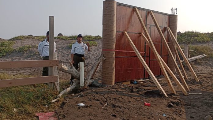 De forma ilegal y sin una orden judicial, elementos del orden público irrumpieron en el predio ubicado frente al restaurante «Negro del Estero»; posteriormente, trabajadores de la construcción ingresaron al terreno con la finalidad de edificar una barda de concreto.