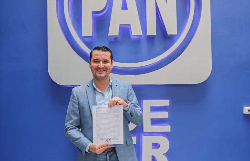 Gabriel Cárdenas se registró como precandidato a la alcaldía de Medellín de Bravo este viernes en la sede del Comité Directivo Estatal del PAN.