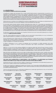 Por lo anterior, gobernadores emanados del partido Movimiento Regeneración Nacional (Morena) exhortaron a la SCJN, a través de un desplegado, consideraron que debe mantenerse tal como lo establece la constitución en su artículo 19 (sobre la prisión preventiva oficiosa).