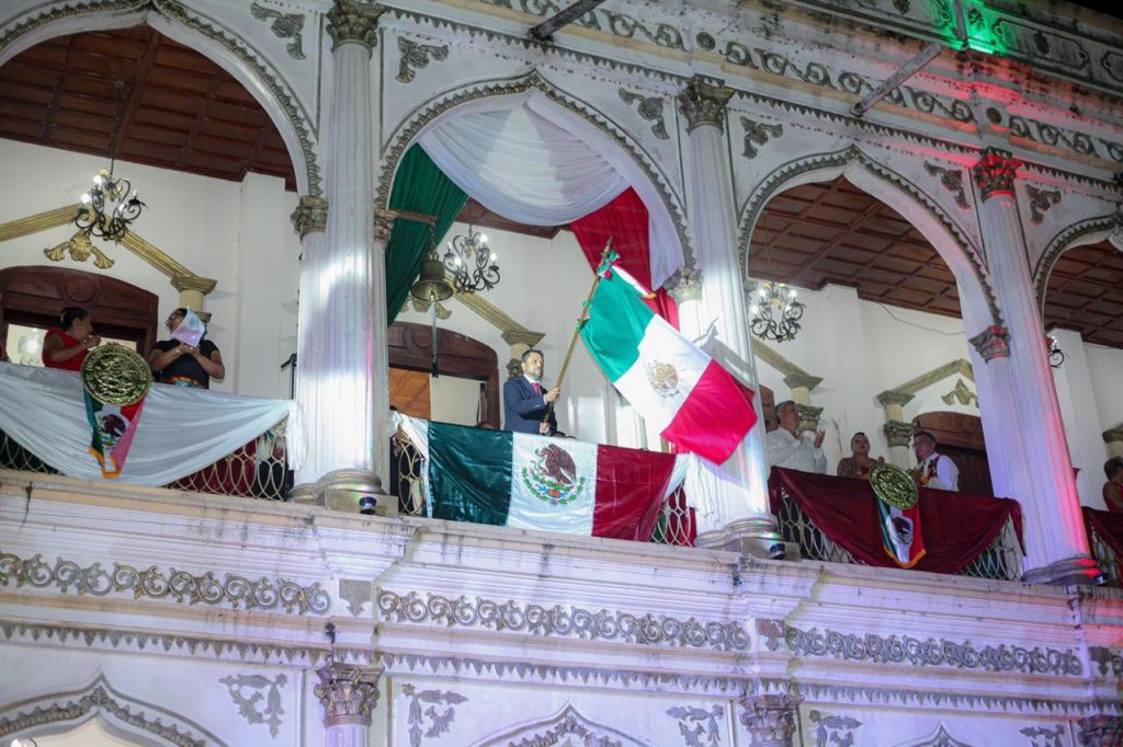 En punto de las 11:00 de la noche, el alcalde ondeó la bandera nacional para expresar las significativas arengas a la patria y los héroes quienes lucharon por México.