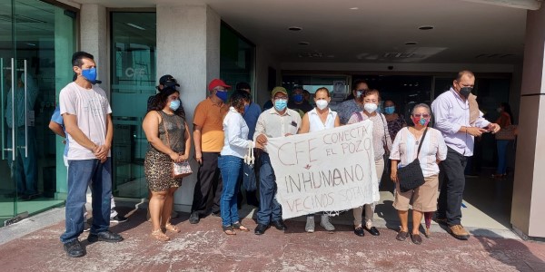 Los inconformes protestaron a las afueras de las instalaciones de la CFE, debido a que la paraestatal les suspendió el servicio eléctrico desde el pasado viernes 30 de julio y ya tienen una semana sin agua por esa razón.