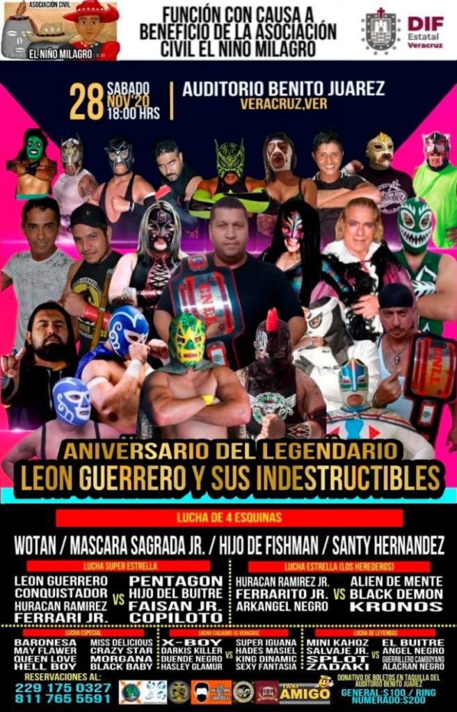 Con esta función de lucha libre se celebrará un aniversario más del legendario luchador “León Guerrero y sus indestructibles”. Además el evento será a benéfico de la asociación civil “El niño milagroso”, pues un porcentaje de lo recaudado en la taquilla se destinará a apoyar a pequeños en situación vulnerable.