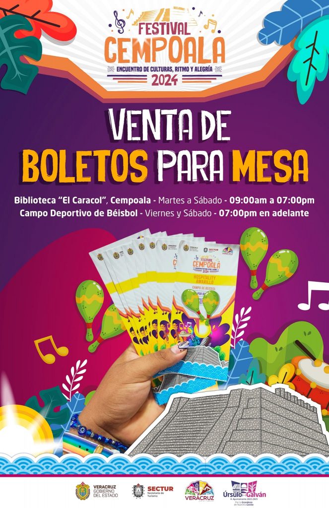 El ayuntamiento de Úrsulo Galván informa atentamente a la ciudadanía que habrá mesas disponibles para los bailes del Festival Cempoala los días viernes 16 y sábado 17 de agosto en el campo de béisbol 20 de noviembre. Tendrán un costo de 800 pesos.