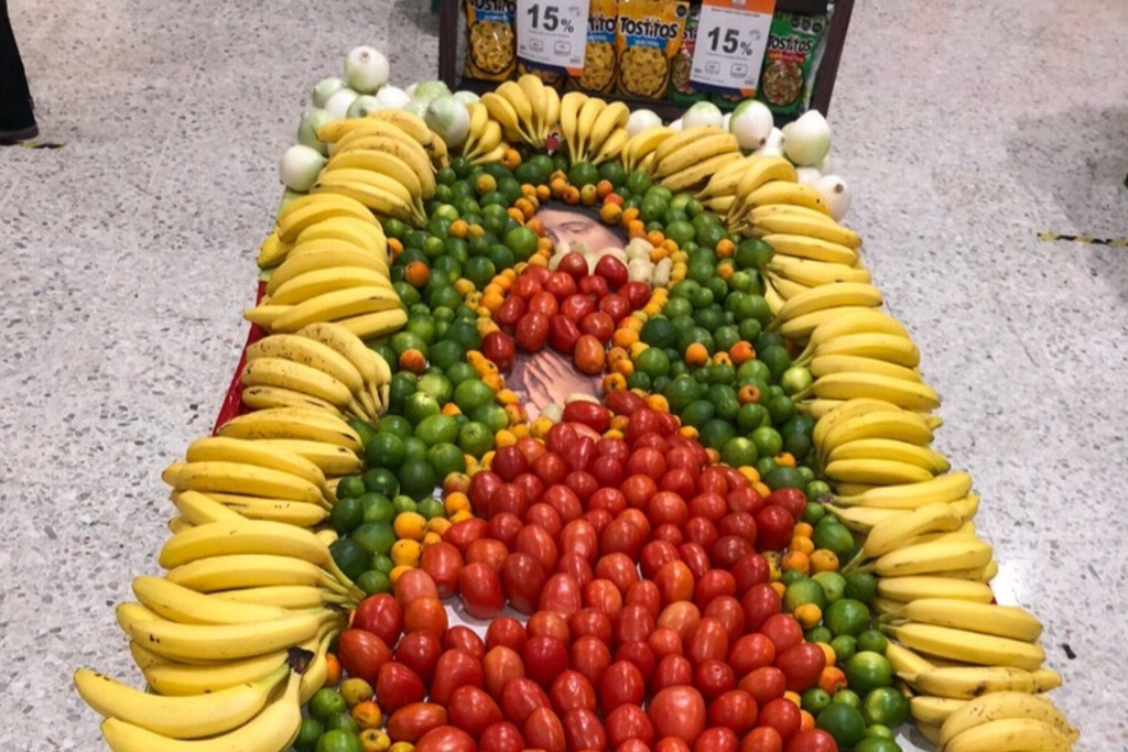 En el marco del día de la Virgen de Guadalupe, trabajadores de un supermercado ubicado en la avenida Matamoros de la zona norte de Veracruz, armaron la imagen de la morenita del Tepeyac con frutas y verduras.