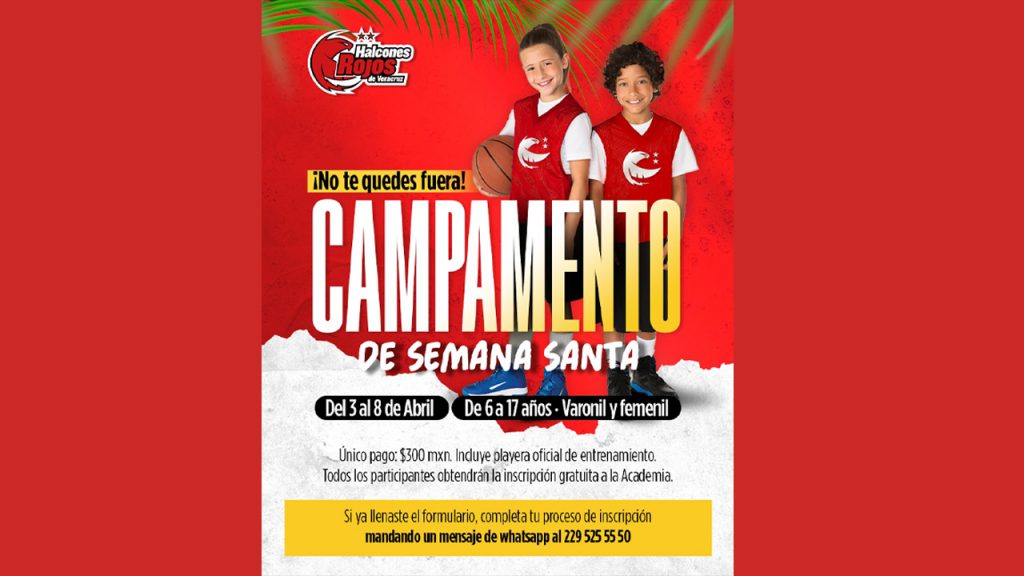 El Club Halcones Rojos de Veracruz realizará su Campamento de Semana Santa dirigido a niñas y niños de los 6 a los 17 años, informó Jessica Elizondo, asistente del entrenador Israel Zermeño del equipo femenil para la Temporada 2023 y quien será la encargada del campamento.