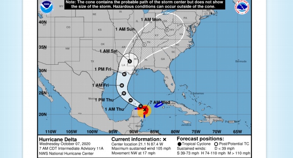 Federico Acevedo destacó que “Delta” se está moviendo al noroeste, también hacia el norte y el nornoreste para dirigirse a las costas de Luisiana y esto podría ser el próximo viernes por la noche.
