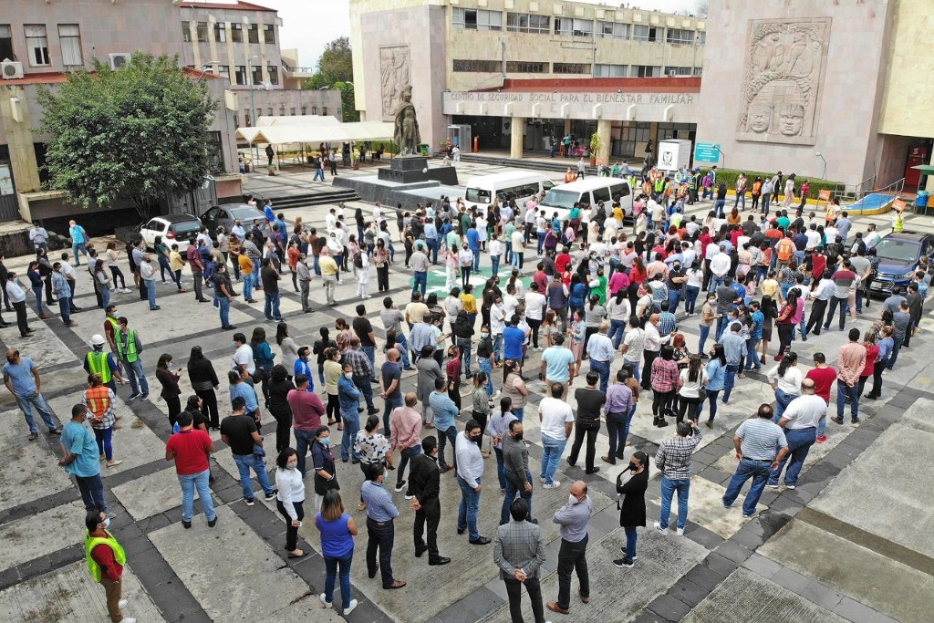 A las 11:30 de la mañana sonó la alarma contra sismo simultáneamente en 42 unidades médicas y administrativas (Hospitales, Unidades de Medicina Familiar (UMF), Subdelegaciones, Guarderías, Tiendas, Centros de Seguridad Social (CCS) y Velatorio); al activarse la señal acústica, alertó de inmediato al personal y para evacuar de inmediato y avanzar al punto de reunión seguro.