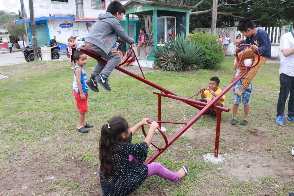 * En coordinación con la Sria. de Desarrollo Social de Veracruz, fue instalado un paquete de equipamiento de juegos infantiles en la colonia 21 de Abril de la cabecera municipal de Alvarado.