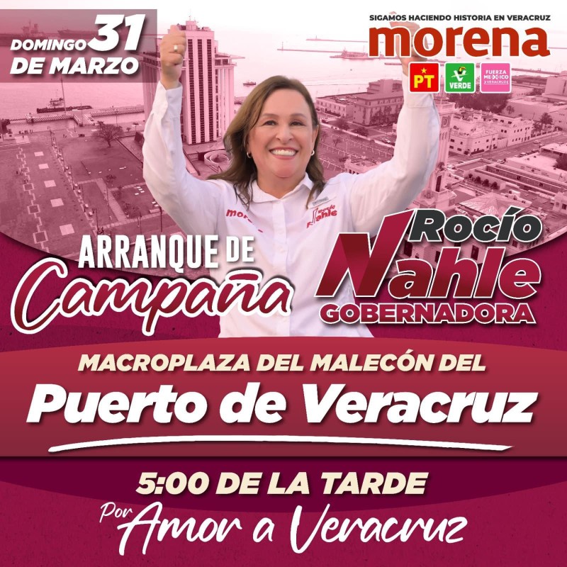 El domingo 31 de marzo a las 5:00 p.m., la candidata de la coalición “Sigamos haciendo historia en Veracruz”, Rocío Nahle García, arrancará su campaña en la Macroplaza del Malecón de Veracruz Puerto.