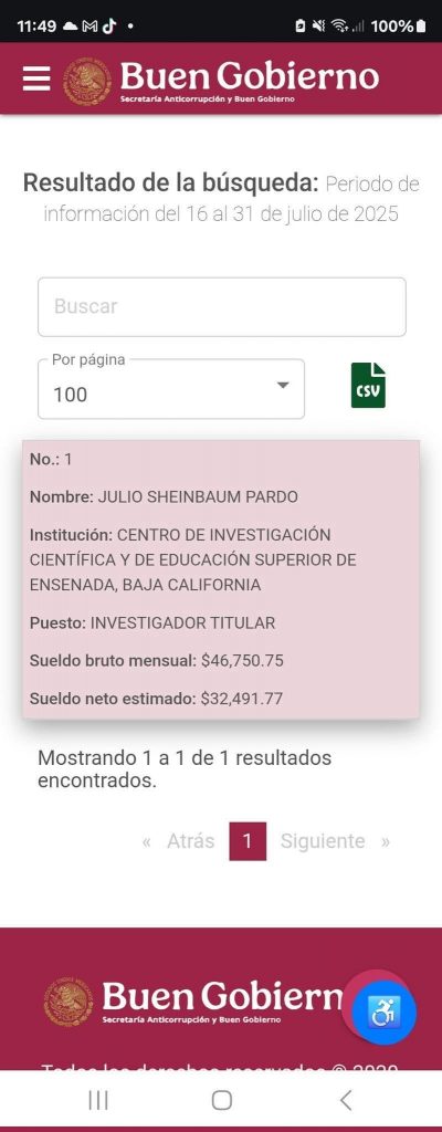 CIUDAD DE MEXICO. – De acuerdo con la exdiputada y escritora Elena Chávez, autora de los libros «El Rey del Cash» y el Gran corruptor, «El hermano de Claudia Sheinbaum, Julio, está en la nómina federal como investigador titular del Centro de Investigación Científica y de Educación Superior de Ensenada, Baja California, donde vive. Su salario es de 32, 491 pesos».