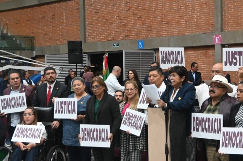 Rodeada de legisladoras y legisladores del partido de Movimiento Regeneración Nacional (Morena) y aliados de la LXVI Legislatura como señal de apoyo, Hernández Espejo explicó que la reforma al Poder Judicial es necesaria porque al cambiarse el método antidemocrático, “no habrá más jueces designados por el Presidente del país con el aval del Senado de la República, sino jueces electos por el pueblo para que sirvan al pueblo”.