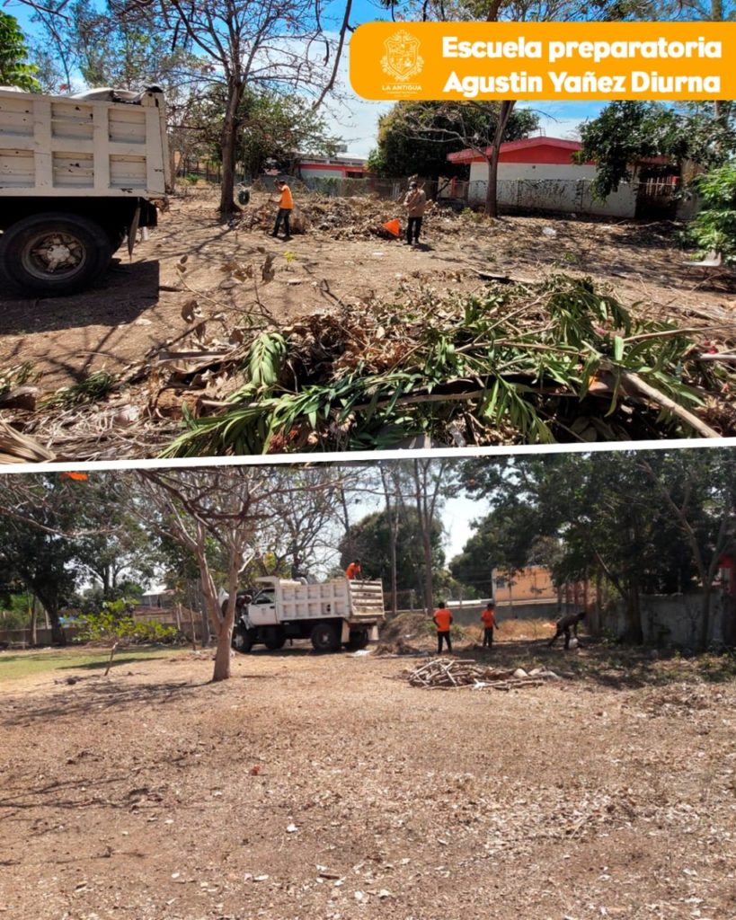 Limpian y descacharrizan preparatoria “Agustín Yáñez” en La Antigua