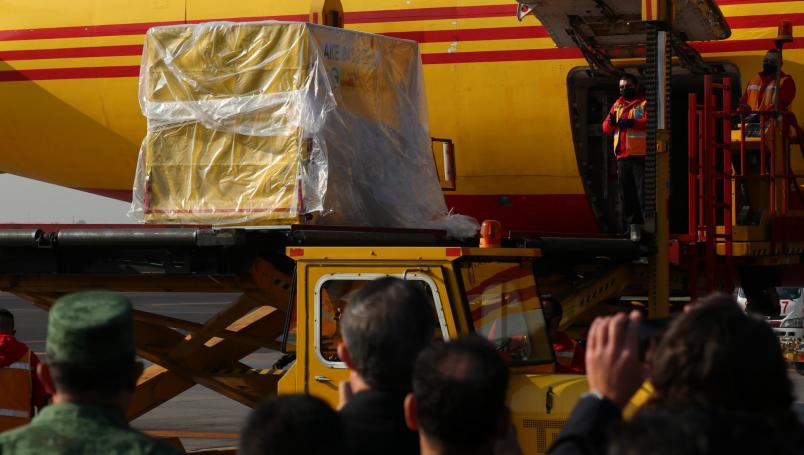 La mañana de este 12 de enero llegó al Aeropuerto Internacional de la Ciudad de México (AICM) el quinto lote de vacunas Pfizer/BioNTech contra el nuevo coronavirus.