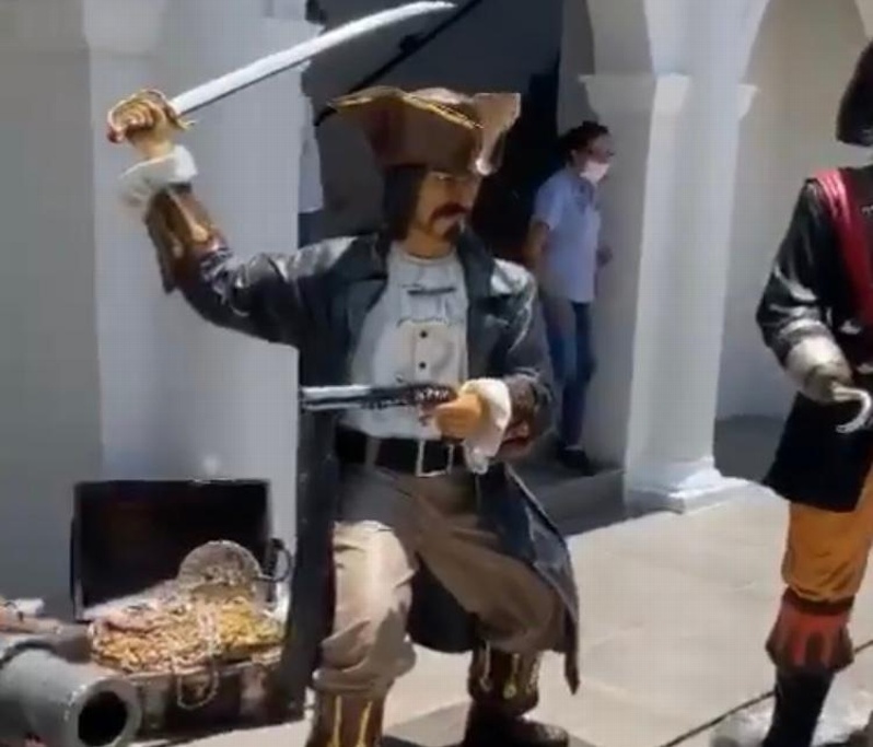 El edil boqueño escribió: “Recibiendo parte del acervo del museo del Pirata” y mostró diversas figuras de piratas, cañones, barcos y calaveras que serán parte de las piezas del museo del pirata en Boca del Río.
