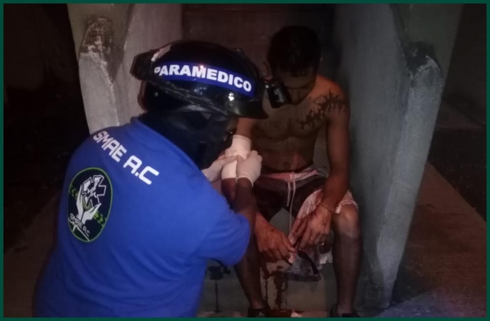 Al lugar llegaron paramédicos de SMAE A. C. para brindar los primeros auxilios al herido mientras llegaba la ambulancia de Protección Civil de Medellín.