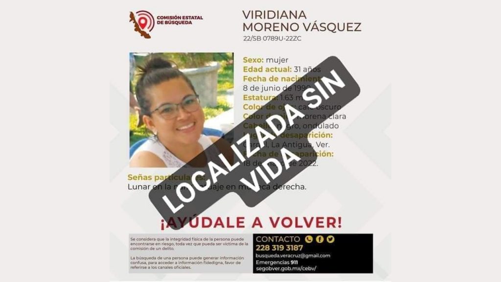 Los padres de la joven Viridiana Moreno Vásquez confirmaron que los restos hallados en Chachalacas corresponden a su hija, quien desapareció en Cardel desde el 18 de mayo cuando se dirigía a una entrevista de trabajo en un hotel.