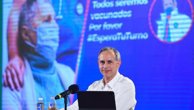 Hugo López-Gatell se sumó a la conferencia cerca de las 19:19 horas, mientras el director general de Centro Nacional de Programas Preventivos, Ruy López Ridaura, explicaba el balance de la vacunación en México.