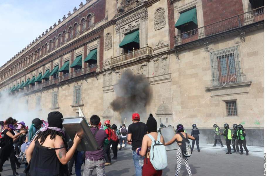 -Un contingente de mujeres arribó hasta el Palacio Nacional como parte de la marcha por el día internacional de la mujer, sin embargo, fueron recibidas también con bombas molotov.