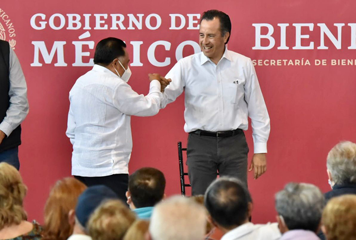 El Presidente municipal Juan Martínez Flores, anfitrión del evento de entrega de tarjetas de la Pensión para el Bienestar de las personas Adultas Mayores, agradeció a la subsecretaria de Bienestar, Ariadna Montiel Reyes, las acciones para que el recurso llegue a todos los rincones de Veracruz.