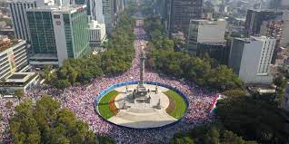 Miles de mexicanos abarrotan la zona del Ángel de la Independencia, avenidas Reforma, Insurgentes y calles aledañas, la tarde de este domingo, al participar en la “Marcha por la democracia” en defensa del Instituto Nacional Electoral (INE), convocada por organizaciones civiles, empresarios y partidos políticos opositores.