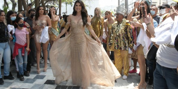 Acompañada por agrupaciones de comparsas, batucadas, bastoneras y misses, realizó un colorido y entusiasta papaqui, el cual inició en el Zócalo de la ciudad y terminó en las oficinas del Comité Organizador.