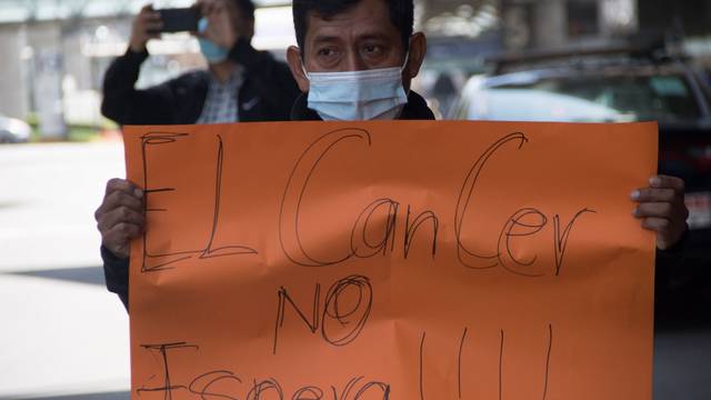 Desde esta mañana decenas de mamás y papás de niñas y niños con cáncer protestan en las inmediaciones del Aeropuerto Internacional de la Ciudad de México (AICM) por la falta de medicamentos.