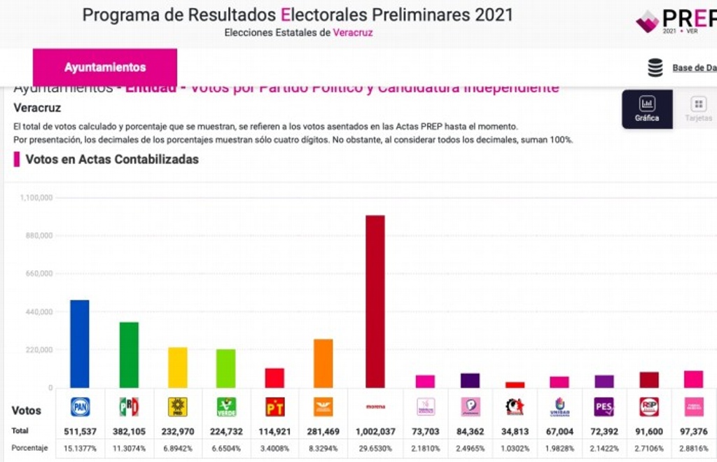El partido Movimiento Ciudadano pasó de gobernar 9 municipios a 18 en la elección del pasado domingo. Obtuvo 281 mil 469 votos, ubicándose como la cuarta fuerza electoral de Veracruz, incluso por encima del PRD.