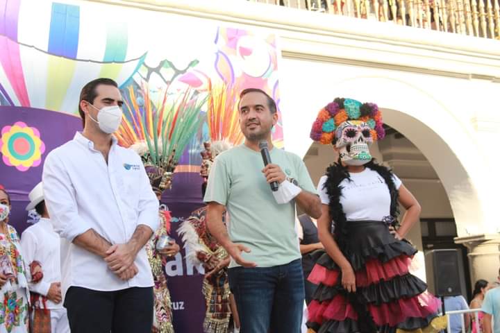 Como parte de las actividades que organiza el Ayuntamiento porteño con motivo del “Día de Muertos”, este sábado el zócalo de la ciudad se vistió de colores con la muestra de globos monumentales y el festival internacional de parejas de folklor y petit pas escuela de ballet.