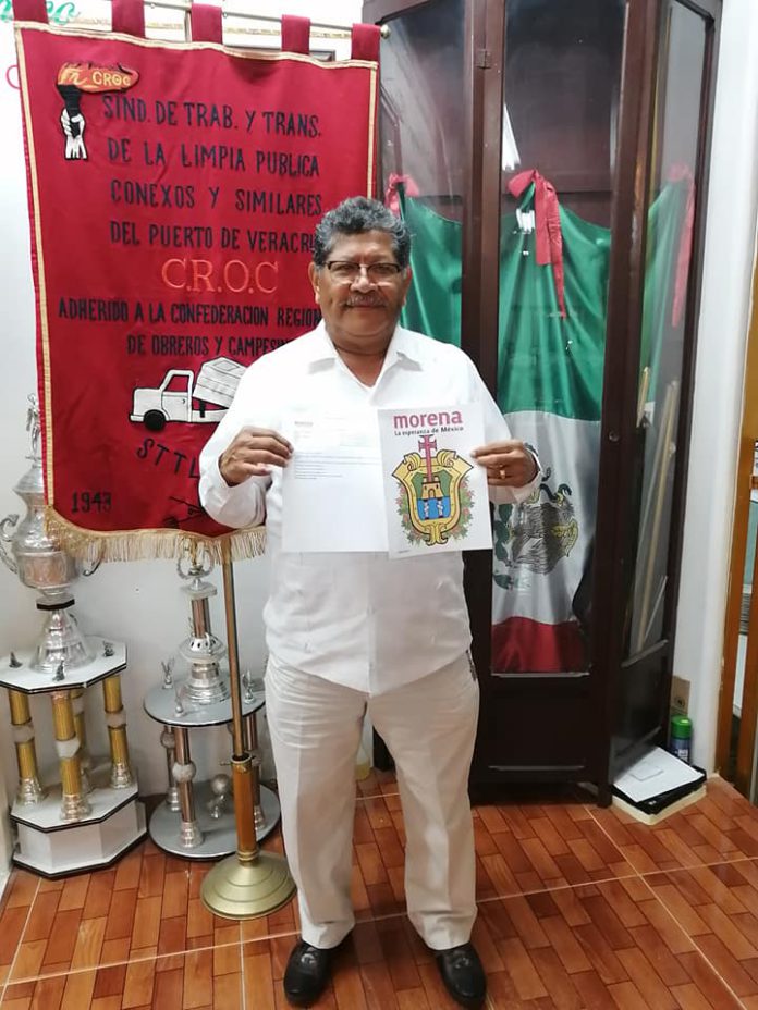 Veracruz, Ver., 05 de febrero de 2021.- El dirigente de los trabajadores de la Limpia Pública, Antonino Baxzi Mata, se registró este día como precandidato a la alcaldía de Veracruz para participar en el proceso interno de selección a esa candidatura por la Coalición “Juntos Haremos Historia”, formada por MORENA, Partido del Trabajo (PT) y el Partido Verde Ecologista de México (PVEM).