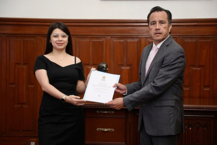 Durante su presentación, el gobernador Cuitláhuac García dijo que a Diana Estela Aróstegui Carballo, le había aceptado la renuncia, pues será propuesta a ocupar la dirección del Centro de Conciliación de Veracruz.