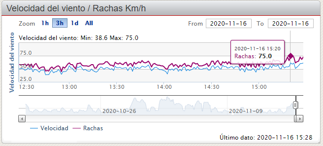 La Secretaría de Protección Civil del Estado de Veracruz informó a través de las redes sociales que la tarde de este lunes 16 de noviembre se registró una racha máxima de 75 kilómetros por hora por el evento de norte en el puerto de Veracruz.