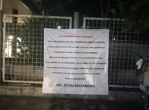 “Deja de otorgar licencias en complicidad con las autoridades de este hospital, con el único fin de reelegirte; tú corrupción, deshonestidad y deslealtad al gremio de enfermeras es repugnante y dañino para toda la base trabajadora”, señala el comunicado.
