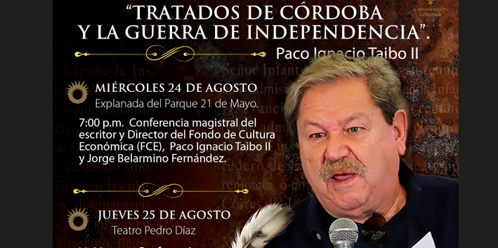 Córdoba, Ver.- El Director del Fondo de Cultura Económica (FCE) y escritor, Paco Ignacio Taibo II ofrecerá en Córdoba las conferencias magistrales: “Tratados de Córdoba y la Guerra de Independencia” y “La Chinaca”, en el marco del Programa Cívico y Cultural por la conmemoración de los 201 años de la firma de los Tratados de Córdoba.