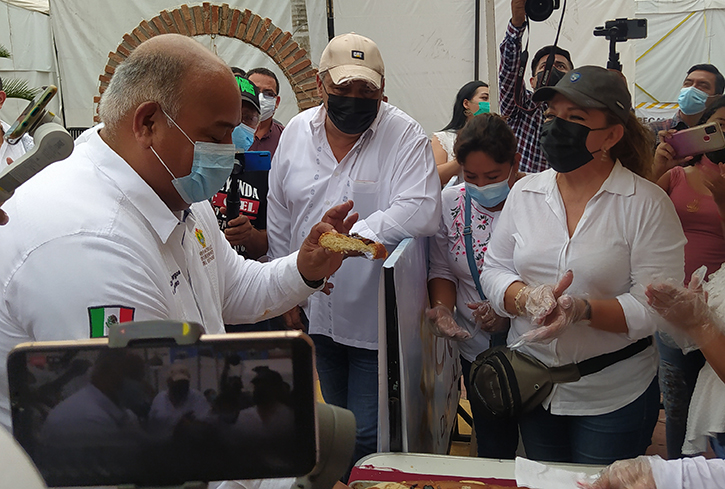 La rosca de reyes después sería repartida por todo el parque de Cosamaloapan, a los presentes, comerciantes incluidos, pero primero la degustaron los funcionarios citados, junto con el alcalde y su esposa, la presidenta del DIF, Graciela Suárez.