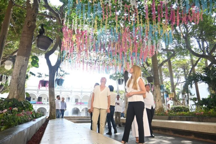 Paty Lobeira de Yunes decora el zócalo para la primavera e invita a visitarlo