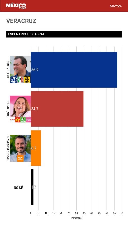 Xalapa, Ver., 28 de mayo de 2024.- Al comenzar la última semana de campañas electorales, 5 de 7 casas encuestadoras muestran que el candidato del frente Fuerza y Corazón por Veracruz, Pepe Yunes, es el favorito para ganar las elecciones al gobierno de Veracruz.