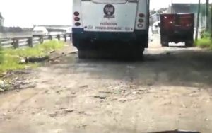 Veracruz, Ver., 02 de septiembre de 2021.- Urge que cuanto antes sea arreglada del todo la calle adyacente de la autopista Cardel-Veracruz, a la altura de la colonia Chalchihuecan y Las Granjas, ya que existen enormes hoyos que imposibilitan el buen tránsito por dicha arteria y además, ha causado desperfectos a vehículos compactos y camiones urbanos.