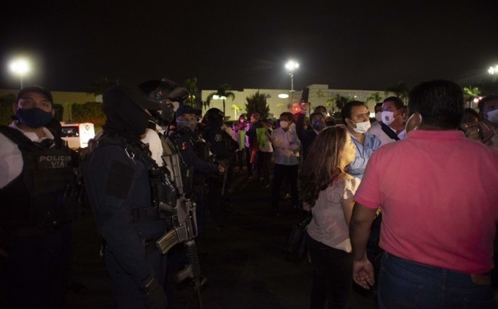 Durante el operativo de los policías estatales para detener a los manifestantes que bloqueaban la avenida Lázaro Cárdenas, los uniformados intentaron detener a reporteros y fotógrafos y les advirtieron : “si me sigues tomando, te levanto y te madreo”.
