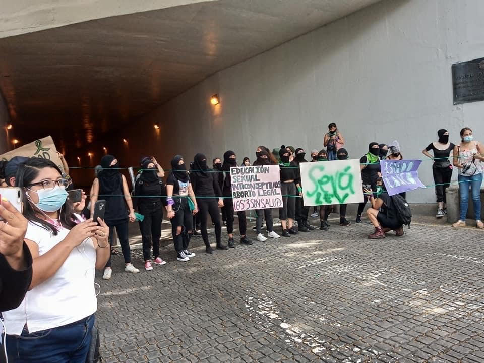 Desde temprano grupos feministas para un aborto seguro hicieron movilizaciones al colocar pañuelos gigantes en puentes peatonales.