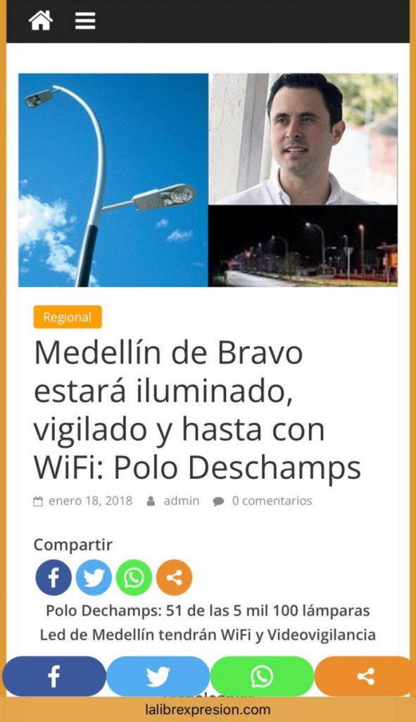 “Medellín estará iluminado, vigilado y hasta con wifi”, reza el encabezado de una nota informativa fechada el 18 de enero del 2018 del medio digital La Libre Expresión en cuyo cuerpo del texto se precisa lo siguiente: