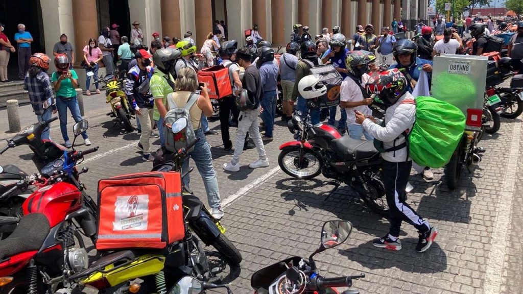 Los motociclistas, en su mayoría repartidores y cobradores iniciaron con una rodada pacífica que inició en la Avenida Lázaro Cárdenas frente a Plaza Américas, cerrando el paso en el lugar hasta llegar a la plaza Lerdo dónde también se llagaron en la calle de Enríquez, frente a Palacio de Gobierno.