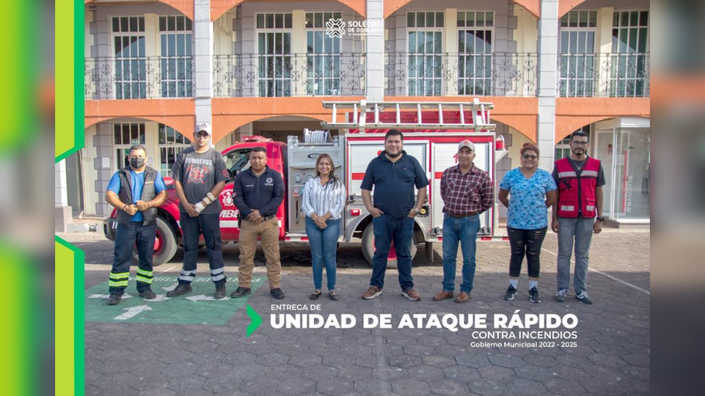 Es por ello que el H. Ayuntamiento de Soledad de Doblado, que preside la Ing. Arantxa Zamitiz Sosa, recibió el día de ayer una Unidad de Ataque Rápido contra Incendios para Protección Civil, con la cual, se salvaguardará la vida, integridad y salud de la población, así como sus bienes, infraestructura y medio ambiente.