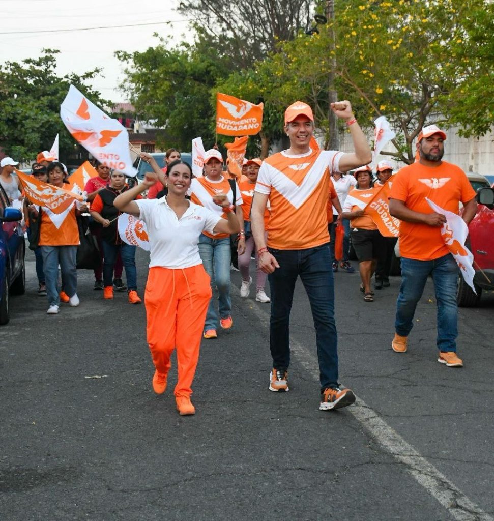 Veracruz, Ver, 19 de mayo de 2025.- Al caminar por calles de la colonia Rio Medio, Belem Exsome, candidata por Movimiento Ciudadano a la presidencia municipal de Veracruz, junto con Dante Alfonso Delgado Morales, constataron el creciente apoyo que la ciudadanía veracruzana está brindando a la Fuerza Naranja.