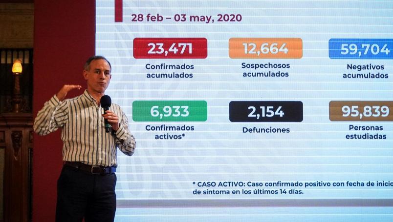 El subsecretario de Prevención y Promoción de la Salud, Hugo López-Gatell, informó que México contabiliza 2 mil 154 muertos por coronavirus Covid-19, con 23 mil 471 casos confirmados acumulados de contagio.