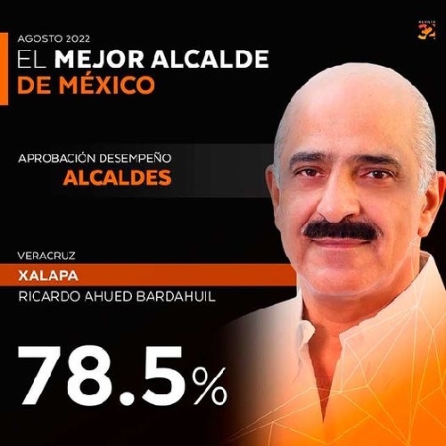 Xalapa, Ver. 13 septiembre 2022.- Ricardo Ahued Bardahuil, el alcalde de Xalapa, Veracruz, es el alcalde mejor evaluado de México al mes de agosto de 2022 según la evaluación de Arias Consultores sobre los 100 municipios más importantes de México. Esta encuesta fue realizada a 23 mil 724 ciudadanos mexicanos con acceso a redes sociales del 26 al 30 de agosto del 2022.