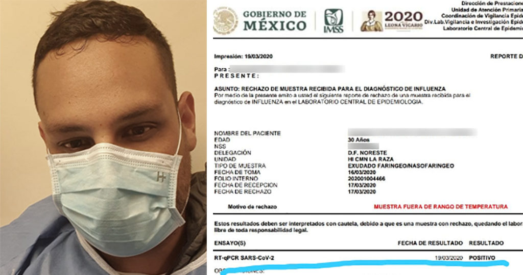 Para el 16 de marzo 2020 se le realizaron diversas pruebas “me hicieron una prueba de sangre, me sacaron sangre de las venas y posteriormente me hicieron las pruebas específicas para Covid-19. Con dos hisopos, te lo introducen a la garganta uno y otro te lo introducen a una de las fosas nasales, a un cierto grado de profundidad porque de hecho la prueba es muy dolorosa.”
