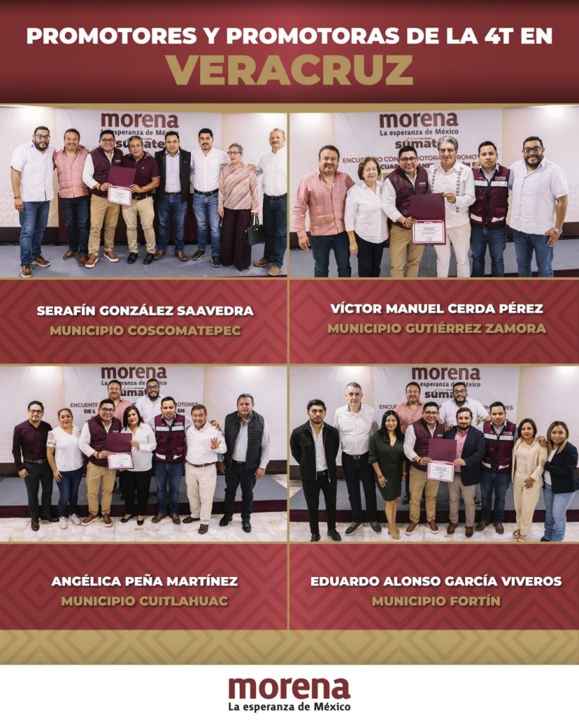 A través de redes sociales, el Comité Ejecutivo Nacional publicó: “¡Felicidades a las y los nuevos promotores de la 4T en Veracruz! Su compromiso y entrega serán clave para fortalecer nuestro Movimiento y seguir construyendo un futuro con bienestar para todas y todos. ¡Mucho éxito en esta nueva etapa!”