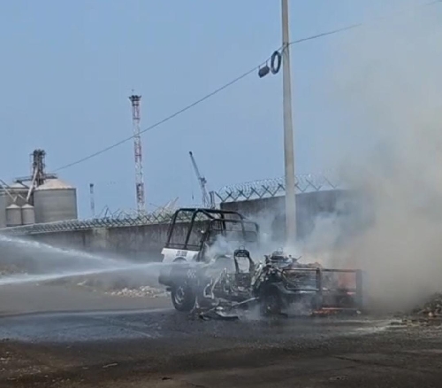 En la avenida Agustín Yáñez y Uribe, cerca de las instalaciones de Petróleos Mexicanos conocida como “El Sardinero” del puerto de Veracruz, se incendió una patrulla de la Secretaría de Seguridad Pública.