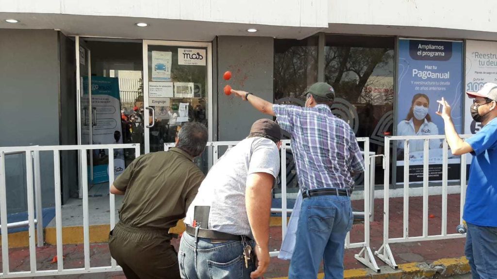 Después de aventar los tomatazos en las paredes de la sucursal, los ciudadanos se dispersaron retirándose del lugar evitando ser detenidos por las autoridades, quienes resguardaron las instalaciones de grupo MAS para impedir que entraran al interior de la sucursal.