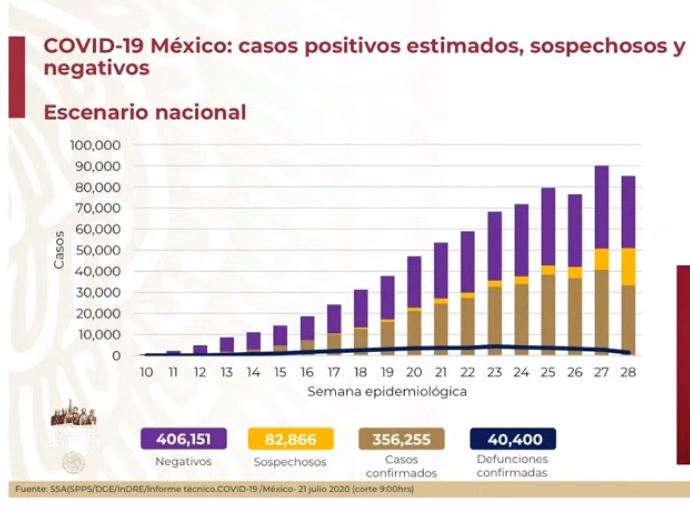José Luis Alomía, encargado de Epidemiología, reportó este martes 21 de julio, 40 mil 400 muertes por coronavirus en el país, teniendo un ascenso de 915 fallecimientos registrados en las últimas 24 horas.